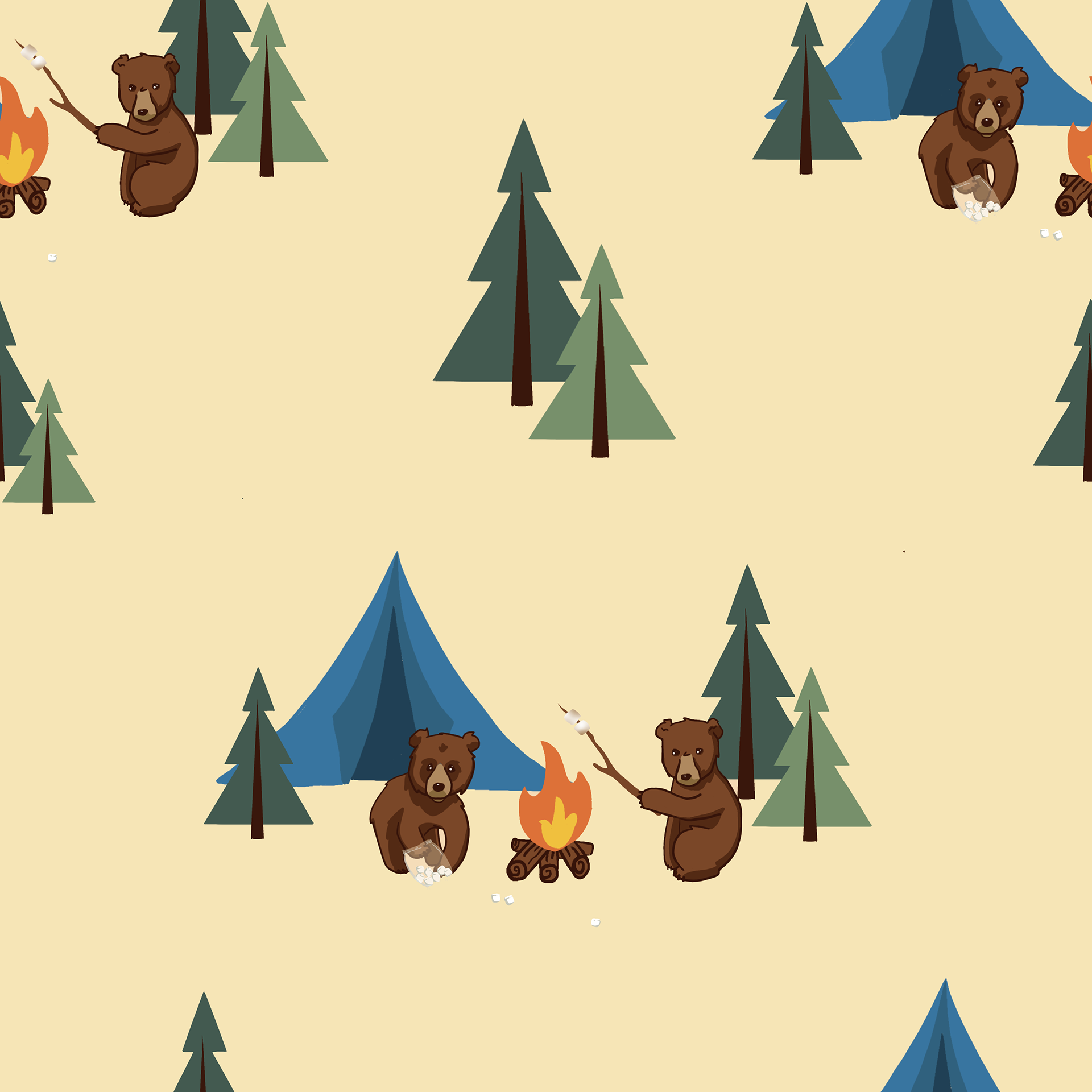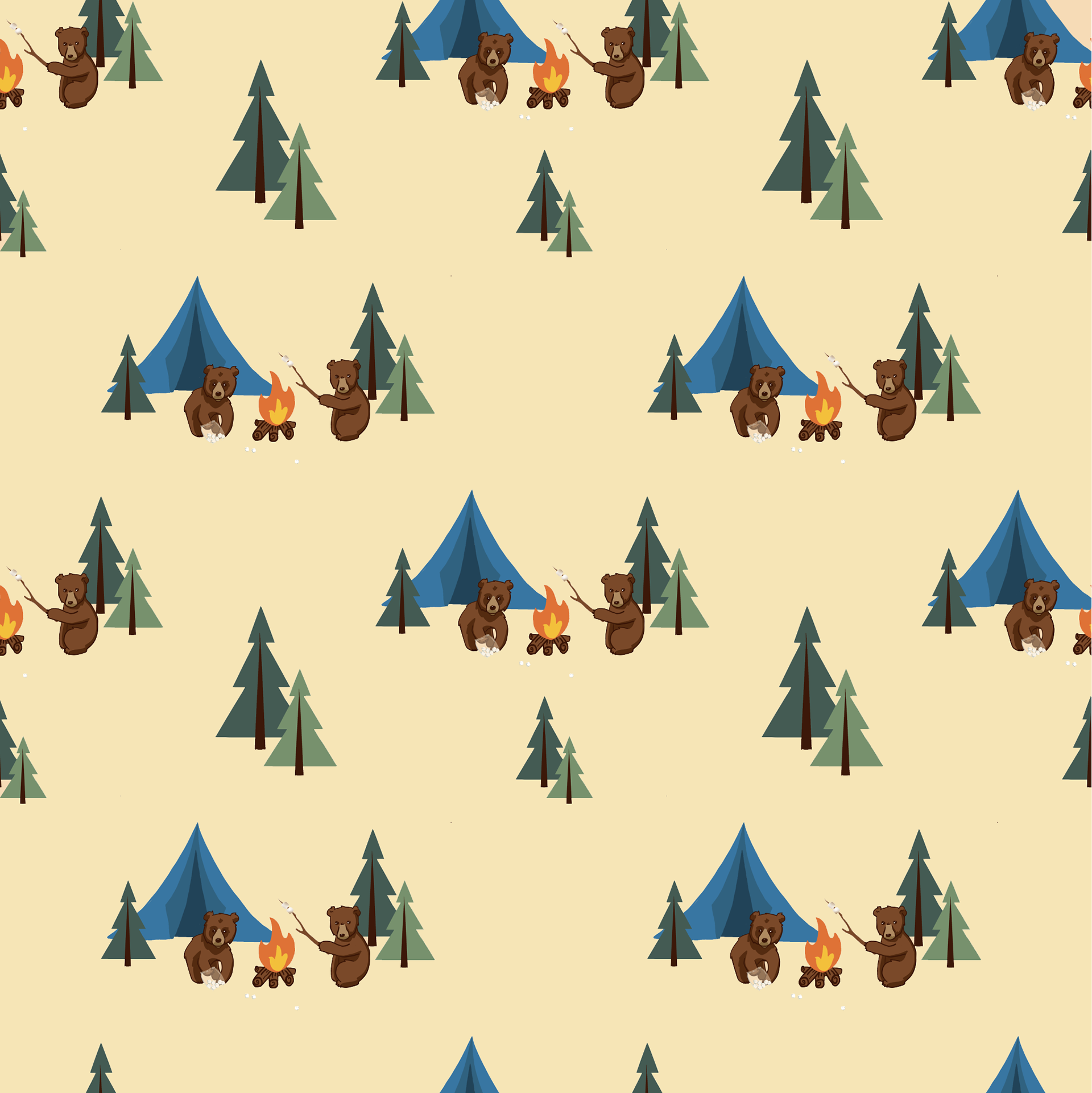 I would really like to get into pattern creation and licensing, so I thought I would make a few so that I can learn along the way. This first one started as individual elements, but I couldn't resist making a little scene. Once I had the scene, I decided that the simpler elements in between could be done with these cute little trees, and voila! I learned a lot along the way and can't wait to try another one!